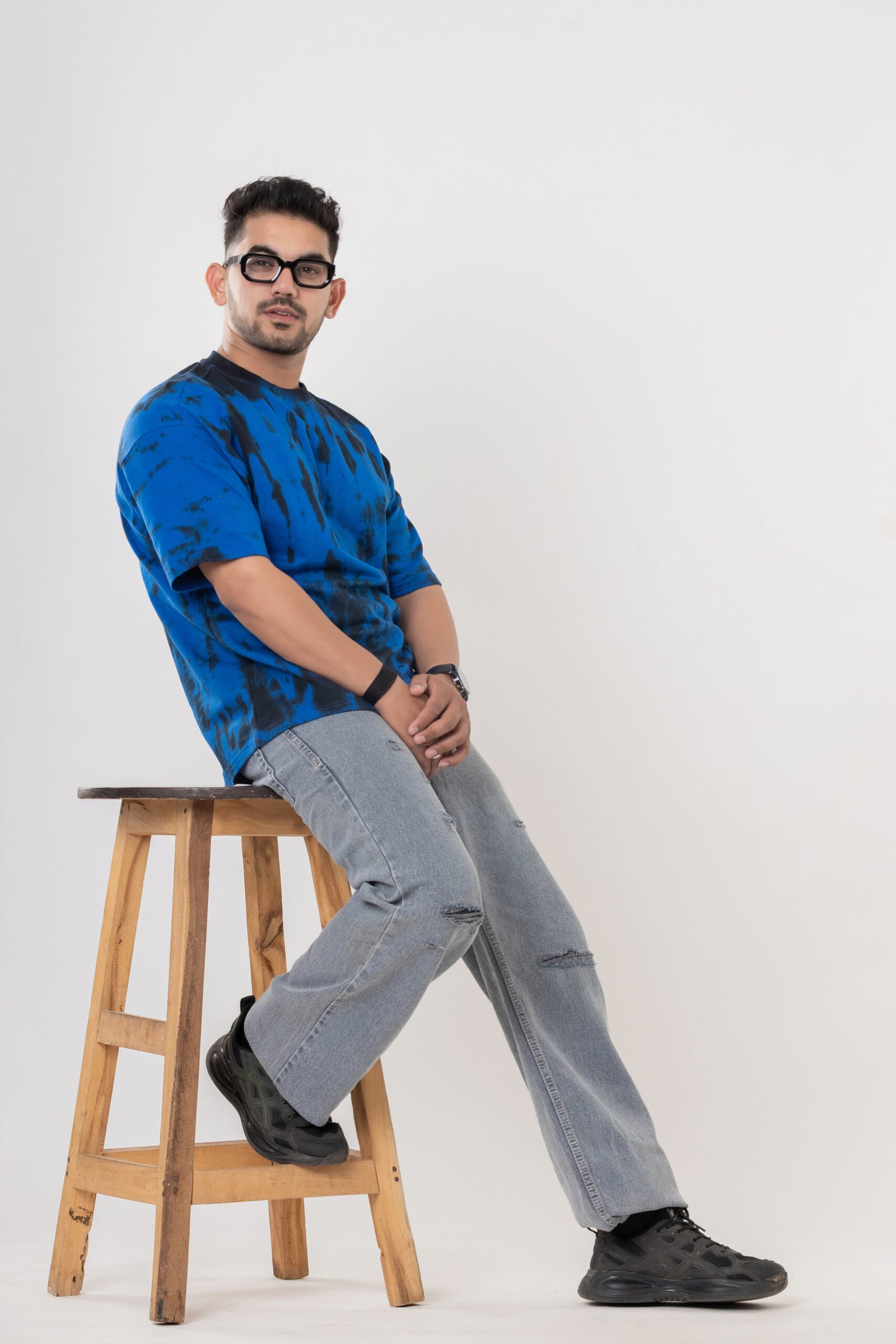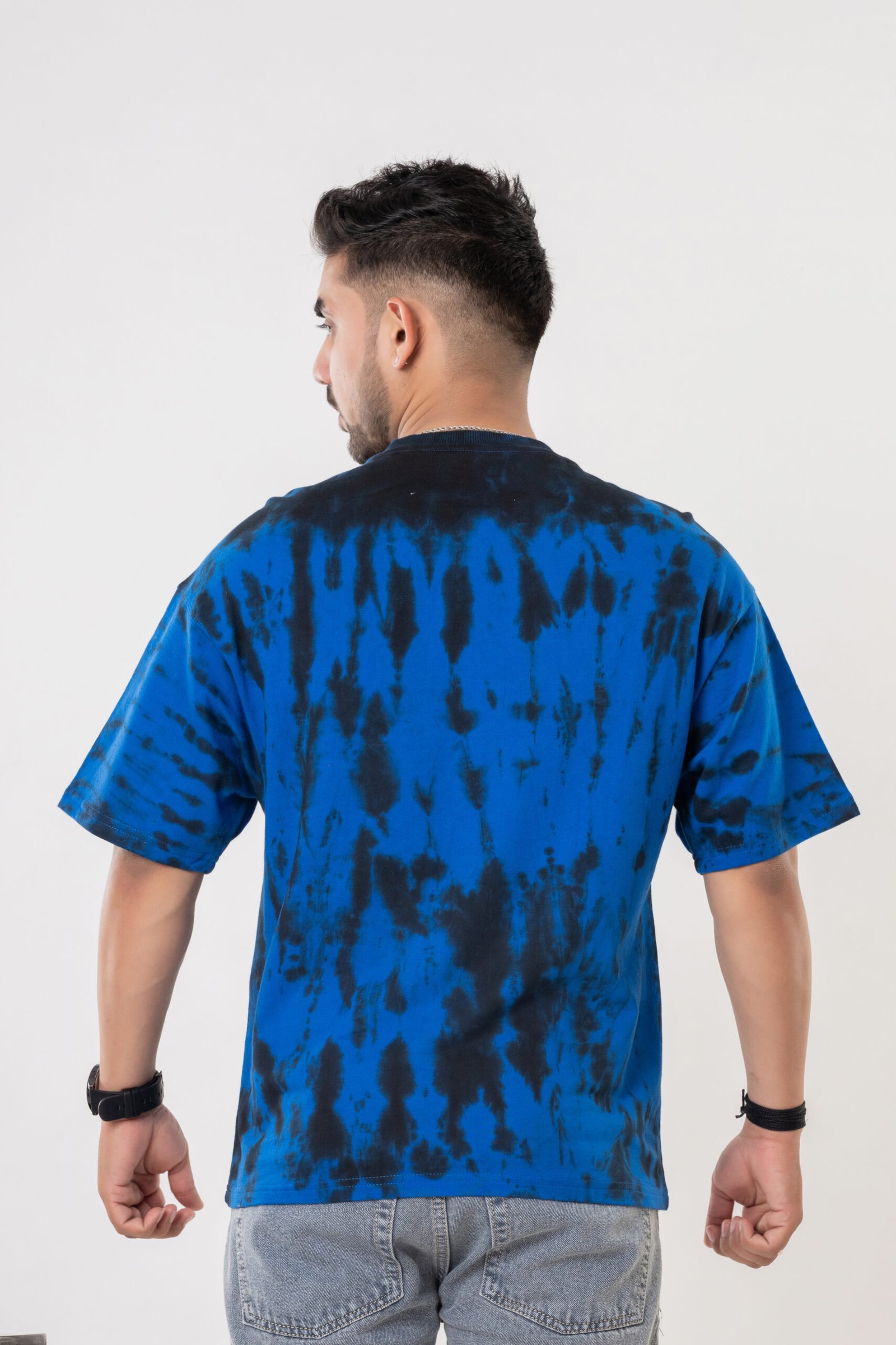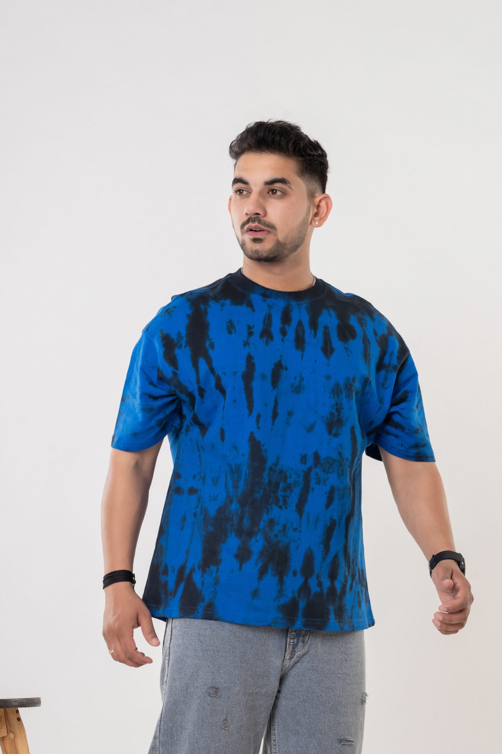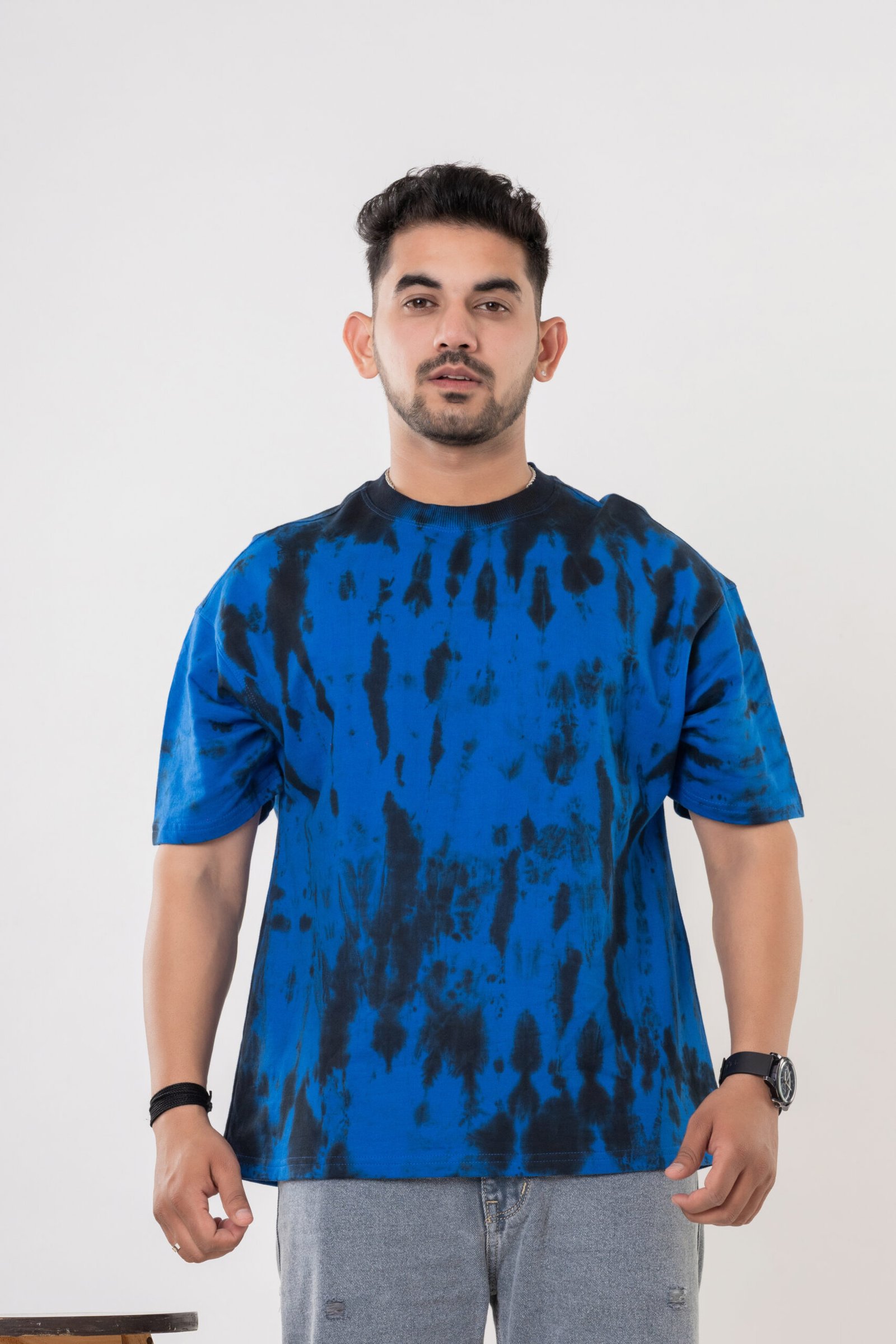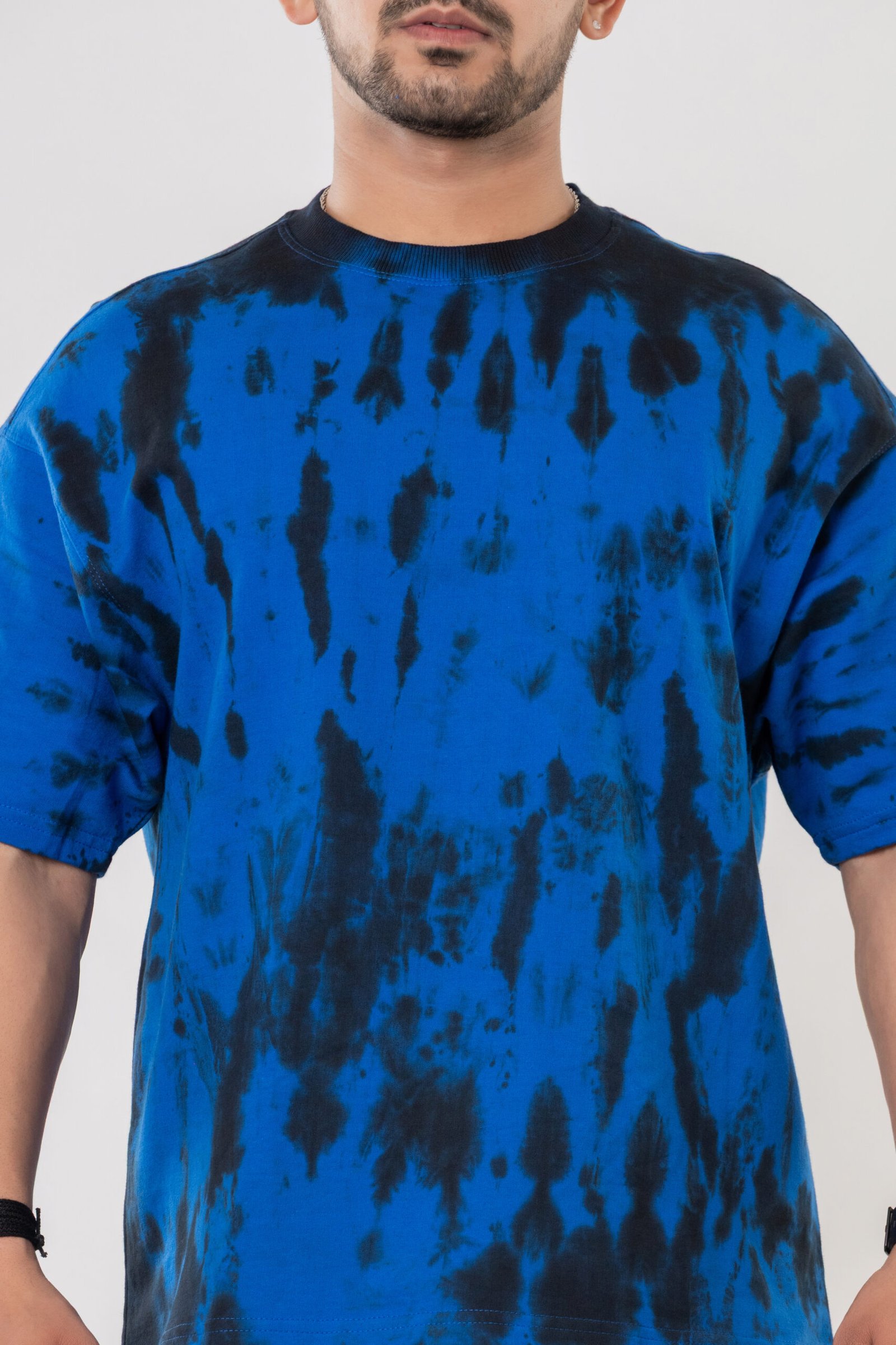 Blue & Black Tie-Dye Oversized Cotton T-Shirt