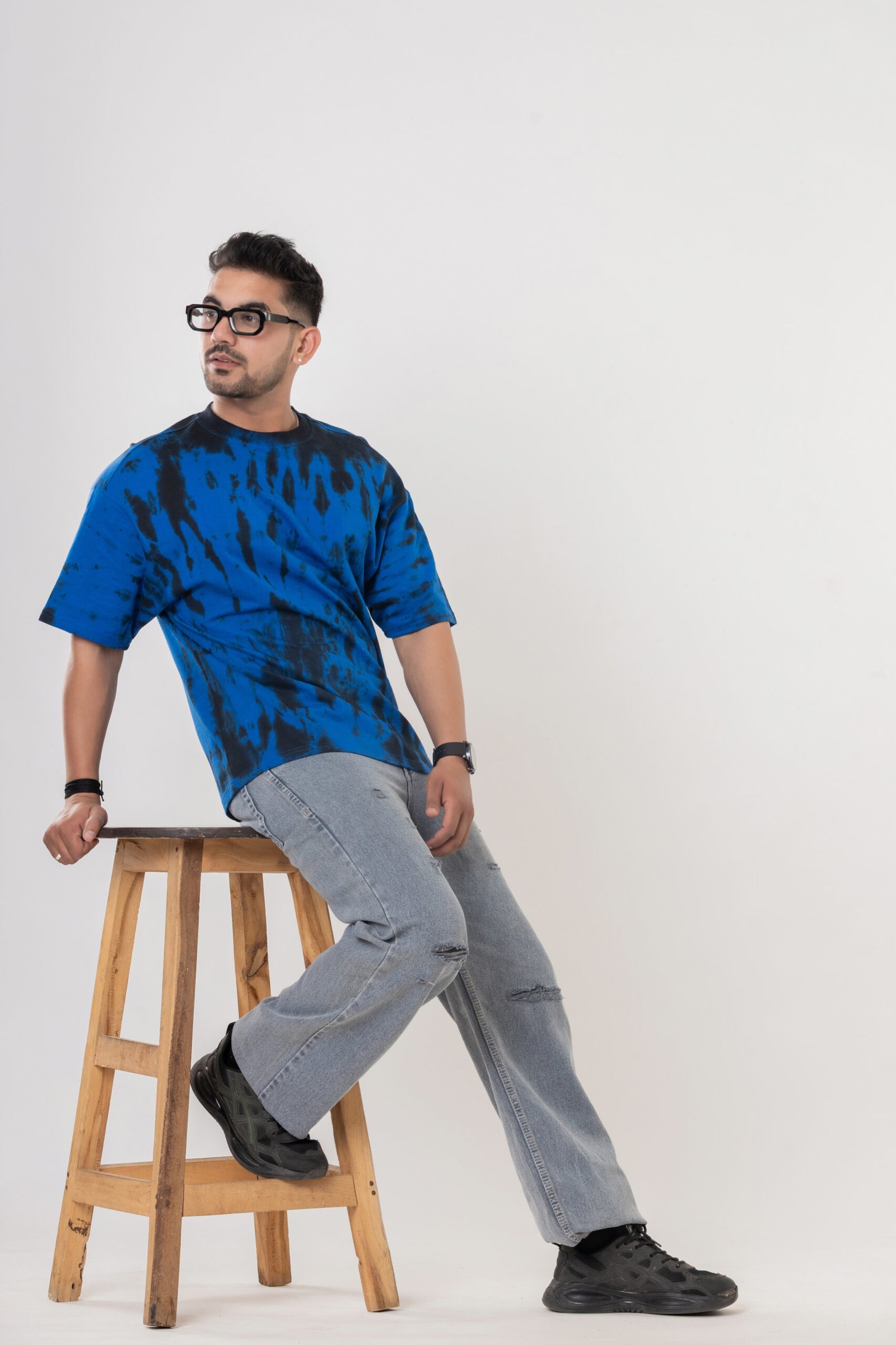 Bring bold energy to your streetwear collection with this Teehance men’s blue & black tie-dye oversized t-shirt. Crafted from soft, pure cotton fabric, this tee features a vibrant blue base with striking black tie-dye patterns all over, creating a unique, eye-catching visual effect. The oversized fit and drop shoulders offer maximum comfort and relaxed style, perfect for daily wear, outings, or college. Pair it effortlessly with denims or joggers for a cool, confident look.