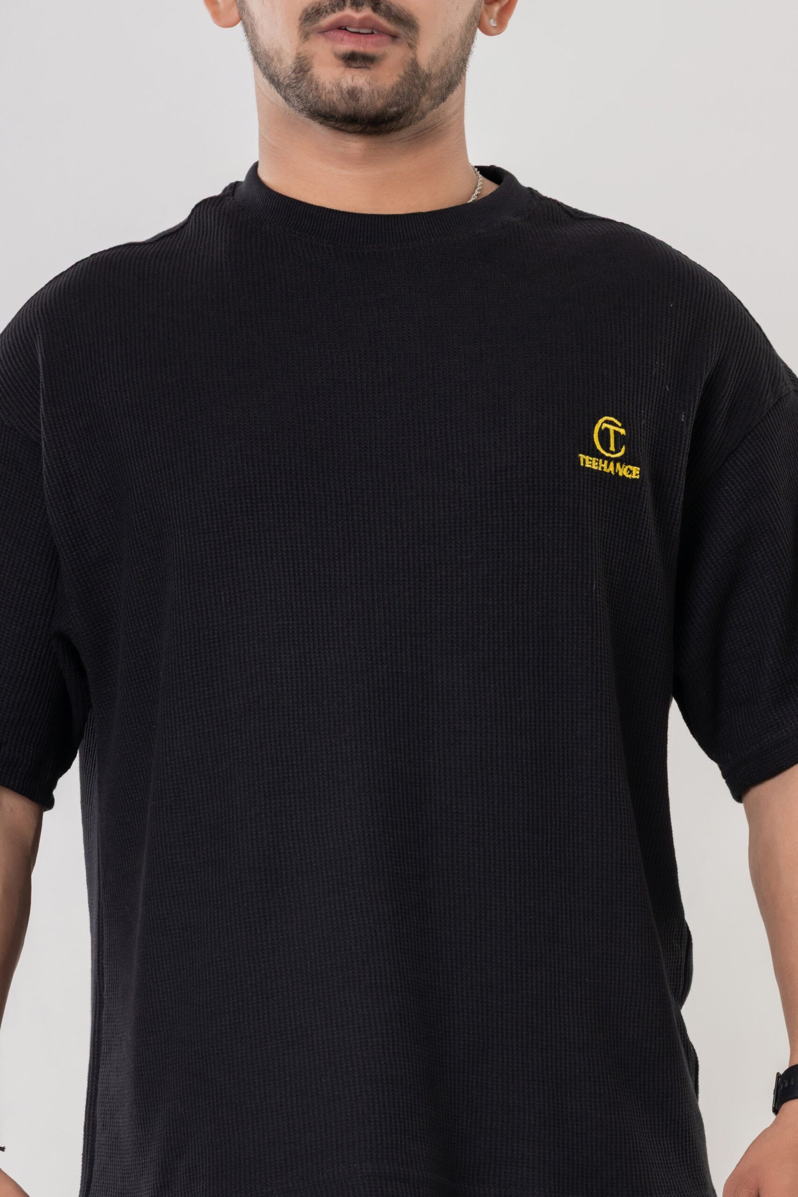 Elevate your daily style with this Teehance men’s black waffle oversized t-shirt, made for optimal comfort and modern streetwear appeal. Crafted from soft, breathable pure cotton, this t-shirt features a unique waffle-knit texture that adds depth and distinction to your outfit. The oversized fit and drop shoulder sleeves ensure a relaxed, contemporary look perfect for casual outings, college, or laid-back evenings. Minimal yellow Teehance logo embroidery at the chest offers a premium brand touch without excess branding.
