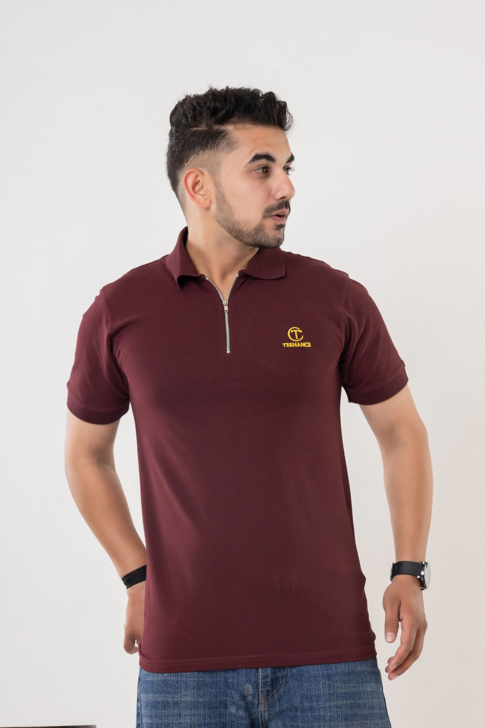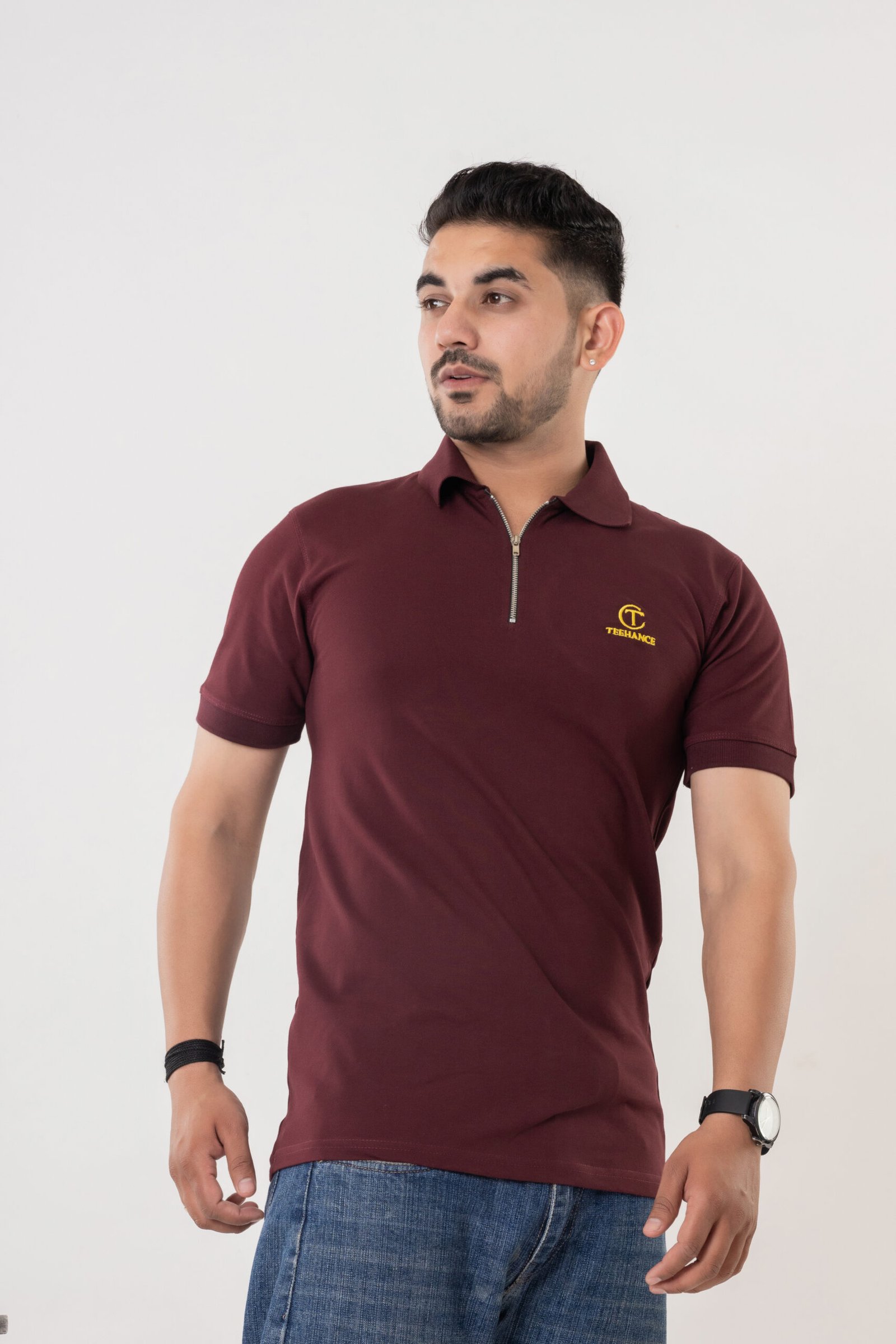 Refresh your casual wear with this Teehance men’s maroon polo t-shirt, offering a blend of modern style and everyday comfort. Crafted from premium, soft cotton fabric, this t-shirt features a signature half-zip front closure and a classic polo collar, giving it a sporty yet sophisticated look. The elegant yellow Teehance embroidered logo adds a premium brand touch on the chest. Short sleeves and a flexible regular fit ensure all-day ease, making it perfect for outings, daily wear, or semi-casual occasions. Pair it with jeans, joggers, or shorts for a sharp and confident appearance.