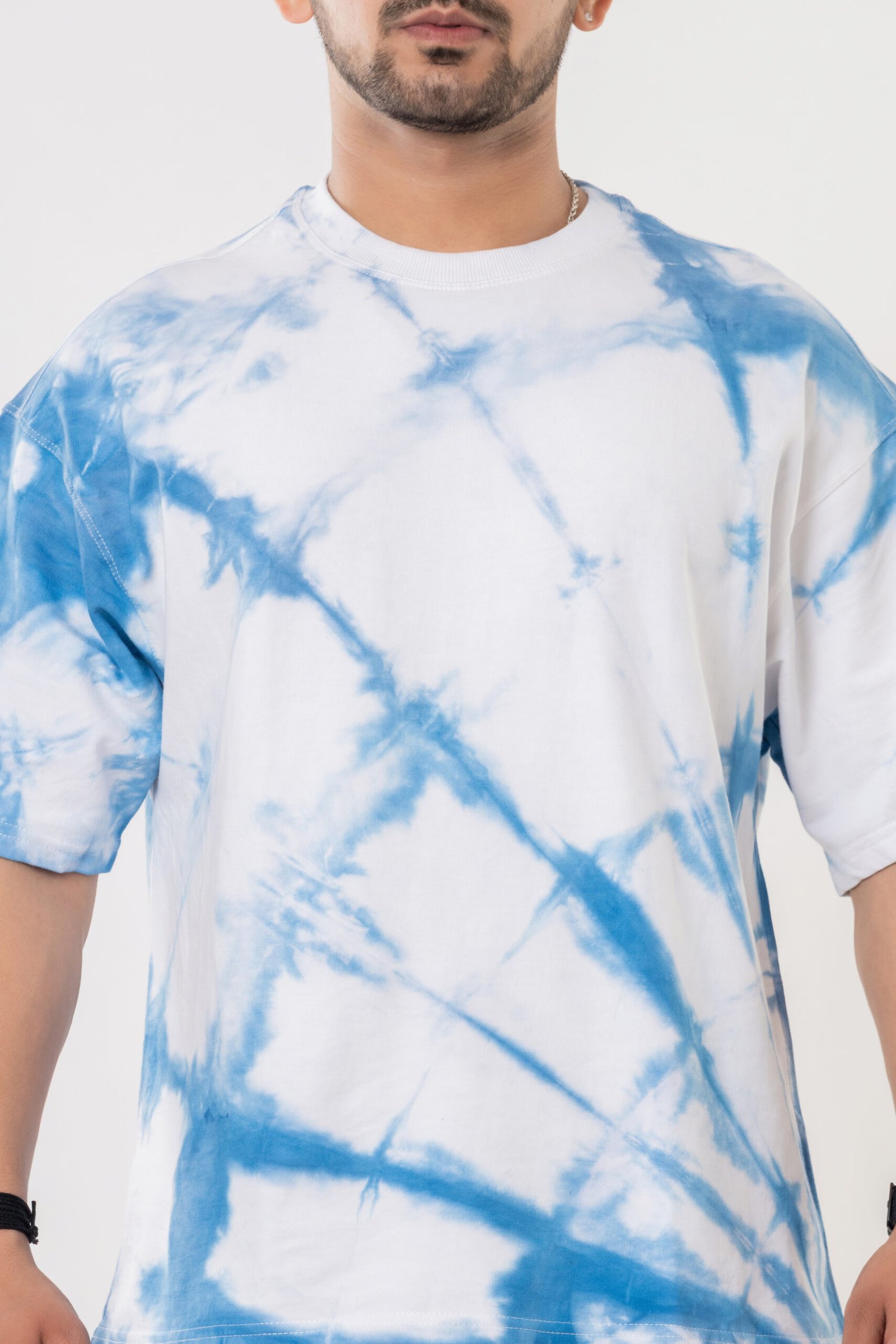 Upgrade your casual collection with this Teehance men’s white and blue oversized t-shirt, designed for both comfort and standout style. Made from pure cotton, this t-shirt features a refreshing white base adorned with vibrant sky blue tie-dye patterns across the front and back, giving a trendy and unique look to every piece. The oversized fit, drop shoulder sleeves, and classic crew neckline ensure relaxed wear for daily outings, travel, or street style.