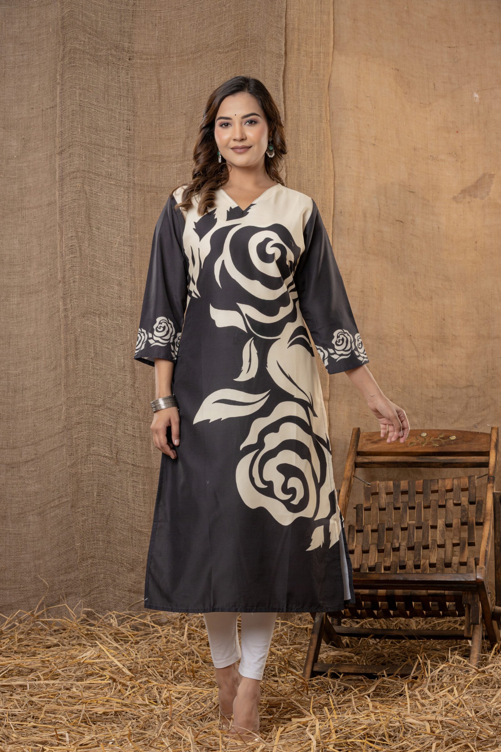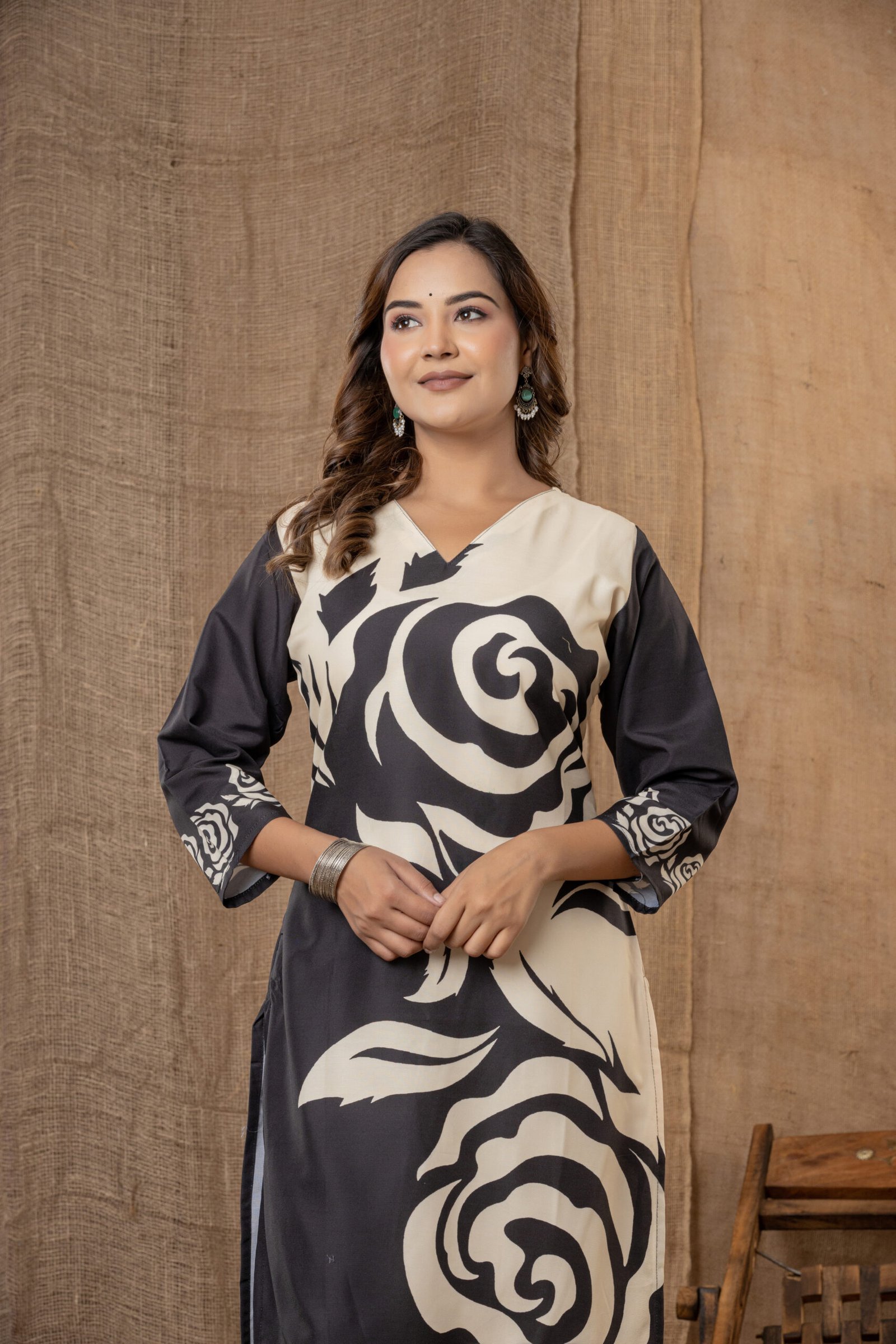 Be the first to review “Women’s Black Printed Cotton Kurta”