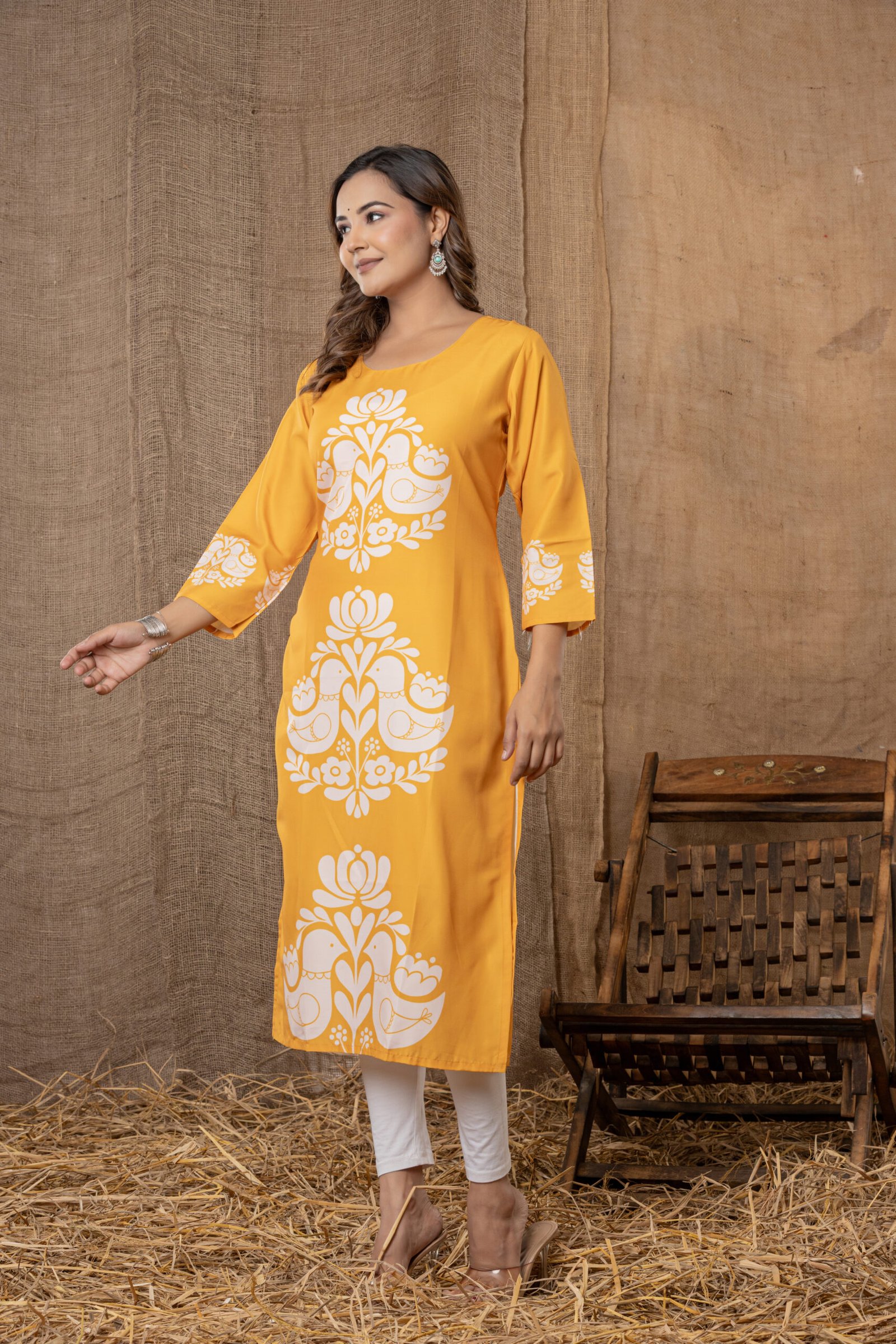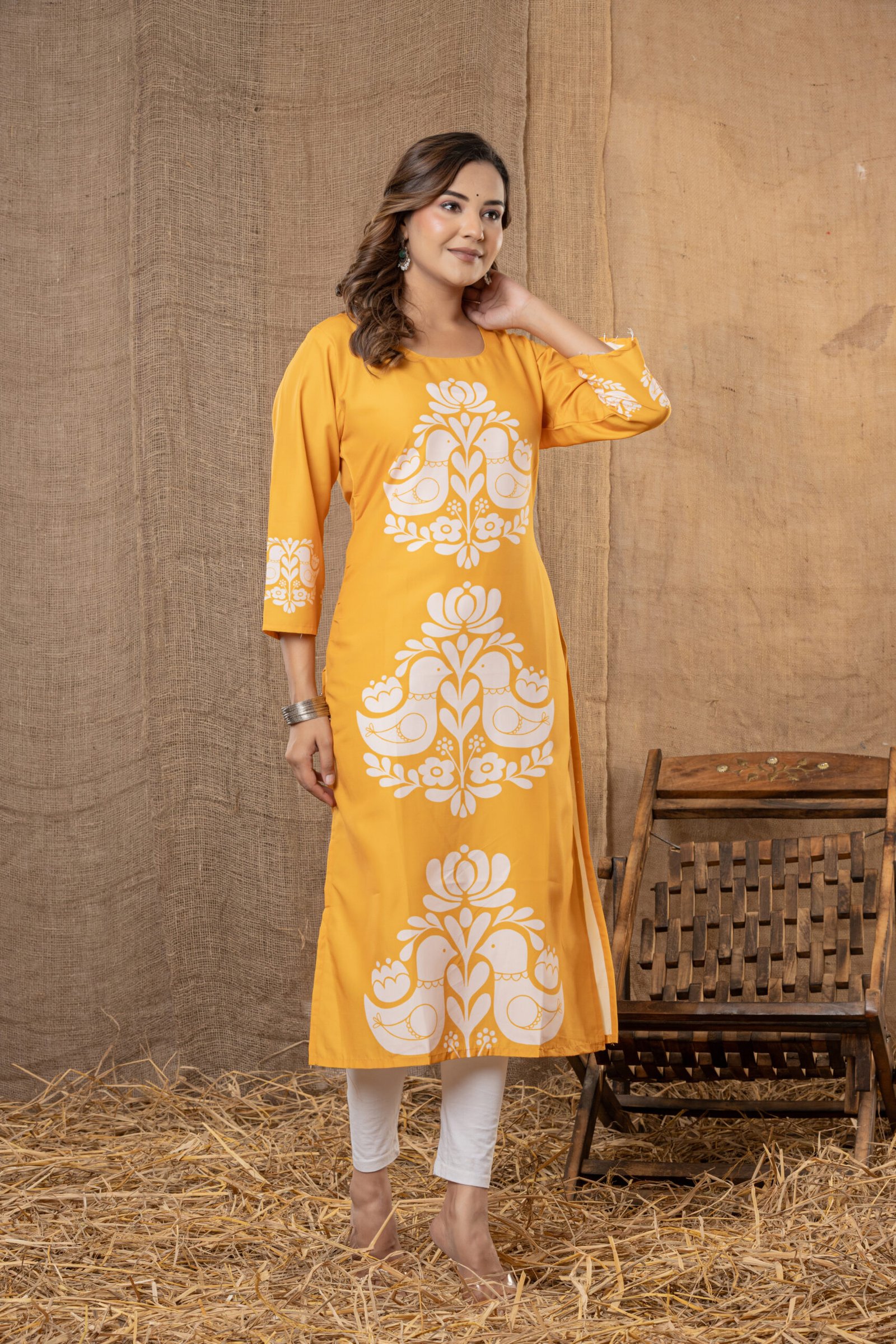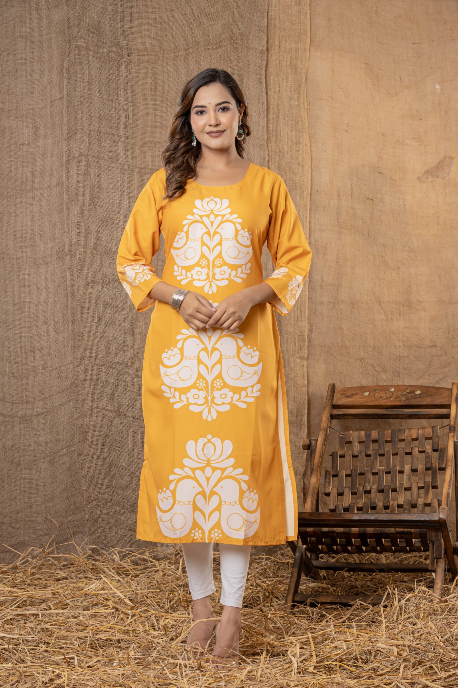 Fit: Straight-cut kurta, knee length with side slits for easy movement