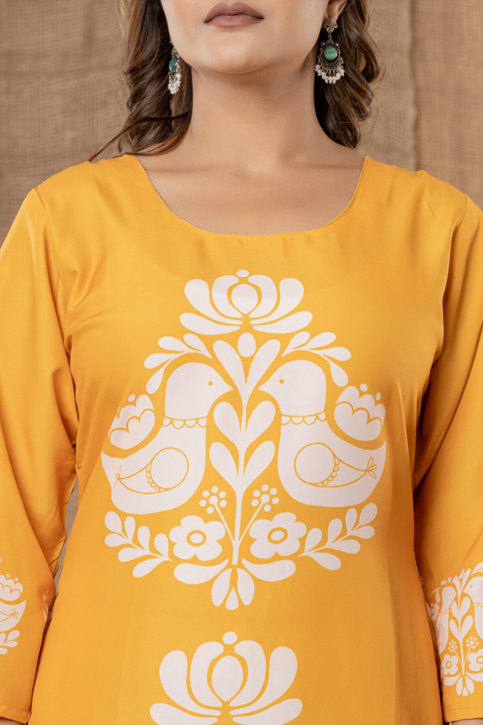 Sleeves: Three-quarter length with matching printed ethnic borders